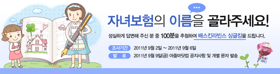 ¾ö¸¶ÀÇ »ç¶û, ¾ÆºüÀÇ »ç¶û, ºÎ¸ðÀÇ ¸¶À½À» ´ãÀº ÀÌ ÅëÇÕ º¸ÇèÀÇ À̸§À» °ñ¶óÁÖ¼¼¿ä. Âü¿©ÇØ ÁֽŠºÐ Áß 100ºÐÀ» ¹«ÀÛÀ§ Ãß÷ÇÏ¿© ¹è½ºÅ²¶óºó½º ½Ì±ÛÅ·À» µå¸³´Ï´Ù.